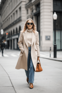 An oversized or sharply tailored blazer instantly adds polish when worn over a basic top and jeans.